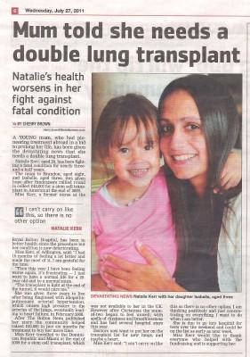 Lung transplant 2011 Image Natalie underwent her successful transplant operation in 2012, and joined us in 2019 to talk about her experience of being treated at Wythenshawe.